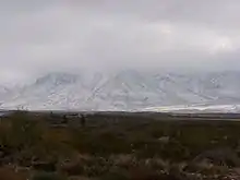 General Pershing's punitive expedition camp near the border, El Paso, Texas (postcard, c. 1916): Franklin Mountains, left-to-right (i.e., south-to-north) are: Ranger Peak, Sugarloaf Mountain, and part of South Franklin Mountain