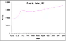 - 1 2 3 4 Statistics Canada, Community Highlights for Fort St. John, 2001 Community Profiles, February 20, 2007.