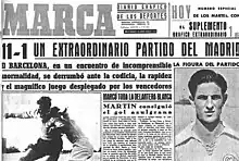 The match report in the newspaper La Prensa described Barcelona's only goal as a "reminder that there was a team there who knew how to play football and that if they did not do so that afternoon, it was not exactly their fault".[42] Another newspaper called the scoreline "as absurd as it was abnormal".[35] According to football writer Sid Lowe, "There have been relatively few mentions of the game [since] and it is not a result that has been particularly celebrated in Madrid. Indeed, the 11–1 occupies a far more prominent place in Barcelona's history. This was the game that first formed the identification of Madrid as the team of the dictatorship and Barcelona as its victims."[35] Fernando Argila, Barcelona's reserve goalkeeper from the game, said, "There was no rivalry. Not, at least, until that game."[43]