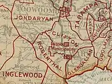 - ↑ "Proclamation [Clifton Division]". Queensland Government Gazette. 11 November 1879. p. 25:995.