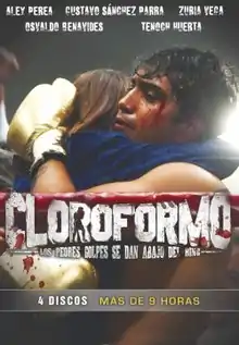 Cloroformo: Los peores golpes se dan abajo del ring, or simply Cloroformo is a Mexican sports boxing drama television series created by Gustavo Loza, and produced by Adicta Films for Televisa Networks.[1] The series consists of 13 episodes of one hour and is stars Álex Perea, Gustavo Sánchez Parra, Zuria Vega, Osvaldo Benavides, and Tenoch Huerta.[2] It premiered on 12 March 2012 on Televisa Deportes Network,[2] and on 22 March 2012 on Golden Latin America.[2] Although Televisa Deportes Network authorized the series for a second season, the production of the second season of the series was never done.[3]