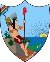 In the lower left barracks there was an indomitable horse as a symbol of freedom, while in the lower right a broken scepter was shown, as a sign of the destroyed royalty. In the upper part of the coat of arms there was an eagle (or condor) with open wings and in its lower part the motto inscribed 'Ser Libre o Morir' (Free or Die) Surrounding the shield were, on the left, an old man armed with a mace on an amphora with the phrase Orinoco, while on the right a nymph held an olive branch that was stepping on an amphora with the phrase Magdalena.[2]