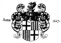 The coat of arms of Barcelona with the Aragonese royal crest (1627)