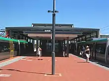 Cockburn Central station opened along with the rest of the Mandurah line on 23 December 2007.[5][6][7] When the station opened, Cockburn Central became a suburb in its own right. Two linked turnback sidings lie to the south of the station, which are used by terminating services from Perth. A pair of crossovers were previously situated between the mainline tracks to the north of the station,[8] but were removed during the 2021-2022 Thornlie-Cockburn Link realignment works.[9]