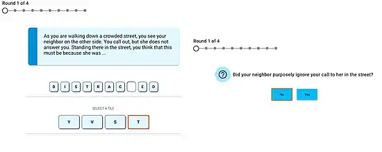 The ambiguous situations paradigm is one of the most commonly-used protocols used to manipulate interpretation bias. In this task, individuals are typically presented with short paragraphs describing an ambiguous situation.[10] The emotional resolution of the paragraph is not revealed until the end of the paragraph—for example, "You ask a friend to look over some work you have done. You wonder what he will think about what you've written. He comes back with some comments, which are all very positi_e [word fragment in italics]." The resolution often features a word fragment that the individual is asked to solve. By repeatedly practicing assigning non-threatening meanings to the ambiguous situations, the individual is thought to learn that uncertainty is more likely to be resolved in a benign, rather than negative, way. The resolution of the ambiguity is typically reinforced through a brief question following the word fragment completion that requires the individual to respond in a way that matches the situation's ending as determined by the word fragment.