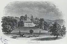 The Monmouthshire antiquarian Sir Joseph Bradney suggests that the first recorded owner of the Coldbrook estate was Richard Herbert, second son of William ap Thomas of Raglan Castle.[1] The Herbert family's origins were at Wern-ddu in the north of the county. Executed after the Battle of Banbury in 1469, Richard Herbert was buried in the Priory Church of St Mary, Abergavenny.[2] In the mid-18th century, the estate was sold to John Hanbury (1664–1734) of Pontypool, who passed it to his third son, Charles Hanbury Williams (1708-1759).[1] Hanbury Williams, a diplomat, poet and wit, undertook a major rebuilding of the mediaeval house in a Palladian style.[3] William Coxe, who stayed at Coldbrook on his tour of Wales in 1799, devotes nine pages of his An Historical Tour of Monmouthshire to recording Hanbury Williams' anecdotes and witticisms.[4] In the late 19th century, the park was bought by Lady Llanover, later coming into the ownership of Arthur Herbert, of Llanarth Court.[1]
