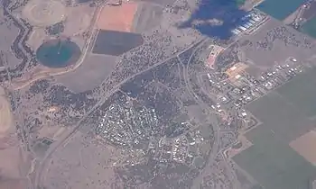 Its main industry has been rice growing, with a major rice mill located one kilometre north of the town. However, the rice mill has been closed and converted to a ruminant feed mill in 2019.[7] Other crops are also grown, such as wheat, cotton, maize, sorghum and soya beans. Grazing of sheep and cattle is also common.