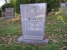It was shortly after this busy period that Hawkins fell into the grip of depression and heavy drinking and his recording output began to wane.[6] His last recording was in 1967; Hawkins died of liver disease on May 19, 1969,[6] at Wickersham Hospital, in Manhattan. He was survived by his widow, Dolores, and by three children: a son, Rene, and two daughters, Colette and Mimi.[22] Hawkins is interred in the Yew Plot at the Woodlawn Cemetery in The Bronx, New York City.[1]