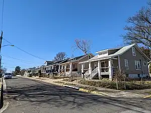 In 1912, the Capitol Cemetery of Prince George's County was incorporated on the Washington, D.C., boundary line. Directly north of the cemetery was the Shreve estate. The Shreve house was destroyed in the 1890s.[6] The 260-acre (1.1 km2) farm site was used by the 6,000 jobless men from Ohio who descended on the Capitol in 1894 as "Coxey's Army".[8] Bladensburg Road traversed the area, becoming more heavily traveled in the 1920s, and eventually became designated as U.S. Route 1. Part of the former Shreve estate was subdivided into building lots in 1918. The lots were 50 feet (15 m) wide by 100 feet (30 m) deep, arranged along a grid pattern of streets.[6] The streets were originally named after President Woodrow Wilson (1913–21), members of his cabinet, and other prominent men of the era. Some time later, the streets were renamed to conform to the system in use in the District of Columbia.[5] The location of the development within the first service area of the Washington Suburban Sanitary Commission offered homeowners modern water and sewer lines. The houses constructed were modest one- and two-story wood-frame buildings. In 1931, the town's streets were paved and gutters were installed. A concrete block municipal building was constructed in 1934, followed by the construction of a brick schoolhouse in 1935. In 1959, a municipal building was constructed to house the town's administrative offices and police department.[6]