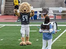 Columbia's Mascot, Roar-ee the Lion, at a football game, 2018