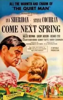 Come Next Spring is a 1956 American Trucolor drama film directed by R. G. Springsteen and starring Ann Sheridan, Steve Cochran and Walter Brennan. It was produced and distributed by Republic Pictures. The theme song, "Come Next Spring", with music by Max Steiner and lyrics by Lenny Adelson, was performed by Tony Bennett. It was covered by Scott Walker on his 1968 album Scott 2. Steiner wrote the score for the film, reusing much of his work from Sergeant York.