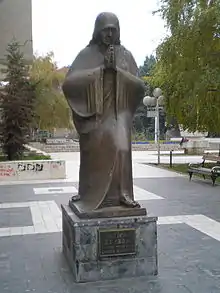 Just at the edge of Skopje's City Mall (Gradski Trgovski Centar), is the place where the house of Mother Teresa used to stand. The memorial plaque was dedicated in March 1998 and it reads: "On this place was the house where Gondža Bojadžiu - Mother Teresa - born on 26 August 1910". Her message to the world is also inscribed: "The world is not hungry for bread, but for love."