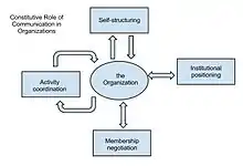 - ↑ McPhee, Robert D; Pamela Zaug (2000). "The communicative constitution of organizations: A framework for explanation". Building Theories of Organization: The Constitutive Role of Communication: 21–45.