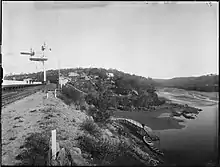 The first Como station opened on 26 December 1885 immediately south of the Georges River. When the original iron lattice girder bridge was replaced, a new station was built about one kilometre to the south opening on 27 November 1972.[2][3][4]
