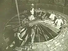 Cass Gilbert (on stool) and staff during construction of the Minnesota State Capitol