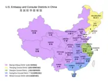 A consular district is a sub-national region designated by a consular post to exercise consular functions in a host country.[1] A consular district is serviced by a consul or "consul-general" and is headquartered at a consulate or "consulate-general." It is a common utility for spreading diplomatic representation and services to regions of a host country beyond a guest country's embassy in the capital.