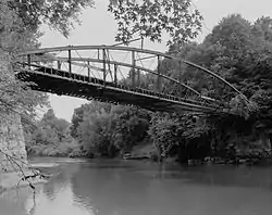 Corbett's/Eby's Mill Bridge is a historic structure located northeast of Scotch Grove, Iowa, United States. It spans the Maquoketa River for 128 feet (39 m).[2] James S. Applegate established a gristmill near this location in 1858. He was joined by John Corbett, who obtained ownership by 1868 and expanded the operation and added a sawmill. He petitioned the Jones County Board of Supervisors for an iron bridge at this location in 1870. They agreed to pay two-thirds of the construction costs with the final third paid for by local subscriptions. The contract to construct this bridge and a similar span in Monticello was made with Miller, Jamison & Company of Cleveland. Both are single span bowstring truss bridges that were completed in November 1871. This bridge has always been identified with the mill. Samuel Eby acquired it in 1875, and it remained in the family until 1913. The bridge was originally on a loop road that circled behind the mill pond. When County Road X73 was created in 1958 it bypassed the bridge to the south. The bridge has been under private ownership ever since.[2] It was listed on the National Register of Historic Places in 1985.[1]
