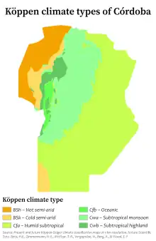 Köppen climate map of Córdoba.