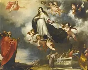 His main commissions came from the chapter of Seville Cathedral. In addition, he completed many commissions for private persons and merchants which explains the variety of the genres in which he worked and the dispersion of his work in Spain. He made many versions of the Immaculate Conception, a theme in which he shows strong similarities to Murillo's iconographic treatment of this subject.[1]