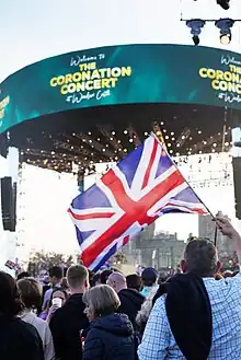 The "Coronation Concert" was held at Windsor Castle's East Lawn.[5][6] The BBC produced, staged, and broadcast the event. A national ballot was held between 10 and 28 February to distribute 5,000 pairs of free tickets for the public based on the geographical spread of the UK population.[5][7] Volunteers from the King and Queen's charities were also among the audience.[5]