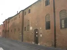 The Corpus Domini Monastery is a monastery at 4 via Pergolato in Ferrara. It first was founded as a house of penitent women, and became a Poor Clares Observant Franciscan convent in 1431. It was the home of Caterina Vigri (St. Catherine of Bologna) from 1431 to 1456. She served as the mistress of novices, teaching about 100 women to become pious nuns. She was also an artist who illuminated her own breviary and is said to have decorated the walls of the convent with images of the Christ Child. These were lost or destroyed in a fire in 1667. The public church was redecorated in the late-Baroque period. On its high altar is Communion of the Apostles by Giambettino Cignaroli (1768), whilst the church's ceiling fresco Glory of Saint Catherina Vegri is by Giuseppe Ghedini (1770–1773). The house is still a monastery; a community of Franciscan nuns, called Poor Clares after S. Clare their founder and companion to S. Francis. One of their abbesses was the daughter of Lucrezia Borgia, Leonara d'Este. She is now recognised as one of the earliest writers of polyphonic choral music for women.