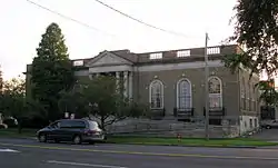 Cortland Free Library is a historic library building located at Cortland in Cortland County, New York. It consists of one colossal story, seven bays wide, that stands on a high basement. It is constructed of brick in the Georgian Revival style and built in 1928. The entrance is marked by a projecting portico with four columns.[2]