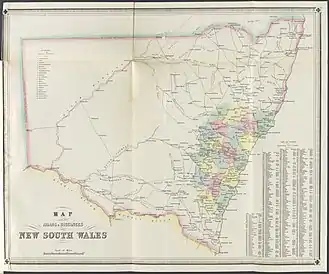- 1 2 3 4 5 6 7 8 Map of a portion of Australia showing the area of the twenty located counties of New South Wales, National Library of Australia, 1841.