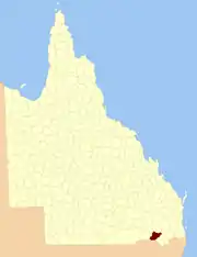 - ↑ Darling Downs District, County of Marsh Maps – B9 Series at Queensland Archives.