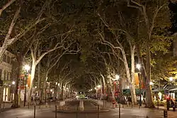 The Cours Mirabeau is a wide thoroughfare in Aix-en-Provence, France.