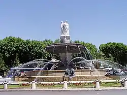 By 1696 four fountains had been built : Fontaine des 9 canons, Fontaine "Moussue, Fontaine du Roi René and, to the west, "les Chevaux-Marins", now vanished.