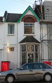 Cox & Barnard received many commissions in the Brighton and Hove area, for both religious and secular buildings. Many of the interwar semi-detached houses in the Nevill Road area of Hove have Art Nouveau-style leaded light panels and roundels in their doors and porches;[4] and the Metropole, Brighton's largest hotel,[7] had some stained glass installed during its postwar reconstruction.[5] The firm designed a glazed canopy at the entrance of the former Hove Town Hall (destroyed by fire in 1966), featuring the design of the Hove coat of arms;[5] in 1946 they installed a window in the tower of the medieval parish church of Portslade, St Nicolas' Church;[4] and in the late 20th century they designed stained glass windows for two synagogues in Hove and restored the windows in the 19th-century Middle Street Synagogue in Brighton.[4]