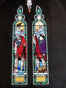 In this old church serving a village which is now part of Worthing, the firm's designer Paul Chapman was responsible for the windows in the west end of the north and south aisles. They were installed in 1958 and depict Saint Thomas of Canterbury and Saint Richard of Chichester respectively.[20]