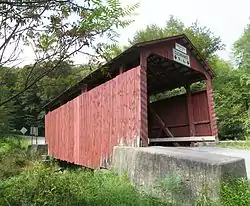The Creasyville Covered Bridge is a historic wooden covered bridge located at Jackson Township and Pine Township in Columbia County, Pennsylvania, United States. It is a 44.5-foot-long (13.6 m), Queen Post Truss bridge over Little Fishing Creek constructed in 1881. It is one of 28 historic covered bridges in Columbia and Montour Counties.[2]