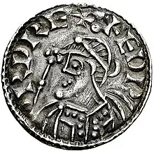 During his childhood, England was the target of Viking raids and invasions under Sweyn Forkbeard and his son, Cnut. Following Sweyn's seizure of the throne in 1013, Emma fled to Normandy, followed by Edward and Alfred, and then by Æthelred. Sweyn died in February 1014, and leading Englishmen invited Æthelred back on the condition that he promised to rule 'more justly' than before. Æthelred agreed, sending Edward back with his ambassadors.[5] Æthelred died in April 1016, and he was succeeded by Edward's older half-brother Edmund Ironside, who carried on the fight against Sweyn's son, Cnut. According to Scandinavian tradition, Edward fought alongside Edmund; as Edward was at most thirteen years old at the time, the story is disputed.[6][7] Edmund died in November 1016, and Cnut became undisputed king. Edward then again went into exile with his brother and sister; in 1017 his mother married Cnut.[1] In the same year, Cnut had Edward's last surviving elder half-brother, Eadwig, executed.[8]