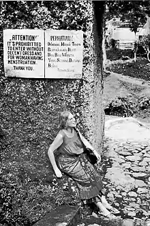 Sign reading: "It's prohibited to enter without decent dress and for woman having menstruation", Bali, 1979