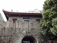 Although Shenzhen is a relatively new industrial and commercial city, it still boasts many historical monuments, some of which have been well preserved. Hohu residential area, Daitian Shijiu, Nantou ancient city, Dapeng Shijiu, and Dawan Shijiu are all monuments with deep cultural heritage. Among them, Dapeng Shijiu has been listed as a "national key cultural relics protection unit" and a "Chinese famous historical and cultural village". "Nantou Ancient City," also known as "Xin'an Ancient City," was built in 1394 during the Ming Dynasty. It was once the capital of Xin'an County.[23][24] Existing historical relics in the ancient city include the Ancient City Gate, Guandi Temple, Dongguan Guild Hall, and the Coastal Defense Office, among others. Some traditional houses and ancestral shrine of the Qing Dynasty, which exhibit Lingnan vernacular characteristics, are also well-preserved in the city. Dapeng Fortress , also known as "Dapeng Guardian City," was constructed during the early years of the Ming Dynasty as a defense against Japanese wokou. It served as a military stronghold established by the imperial court and has a history spanning over 600 years. The buildings in the city still maintain the same pattern as they did in those days, with structures such as buildings, halls, rooms, wells, corridors, courtyards, etc. The plaques and other features have also remained unchanged.[25]