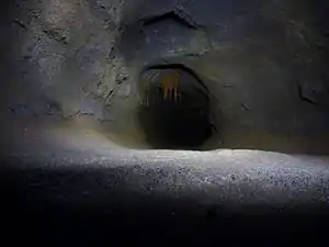 A cupola is a recess, indentation, or cavity in the ceiling of a lava tube, a kind of cave formation.[1][2] Cupolas may originate from partial collapse of the ceiling, inflation of the roof by gas or lava pressure, or from a roofed-over site of a former tube overflow.[3] They can be situated anywhere in a lava tube but are most common in lower-level passages.[4]