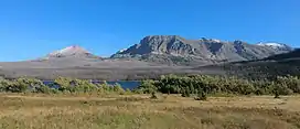 ![]() Divide Mountain at left and Curly Bear Mountain on the right | |