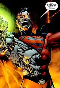 Hank Henshaw is an astronaut at NASA until a solar flare hits his space shuttle during an experiment in space, damaging the ship and the crew. Henshaw and the crew, including Henshaw's wife, found that their bodies had begun to mutate and, after returning to Earth, Henshaw's entire crew either perished or eventually committed suicide. After learning that Superman had thrown the Eradicator into the sun in a battle during the space shuttle experiment, Henshaw blames Superman for the solar flare and the accident. Before his body completely disintegrated due to the radiation exposure, Henshaw is able to save his consciousness. Using NASA communications equipment, Henshaw beamed his mind into the birthing matrix which had carried Superman from Krypton to Earth as an infant. He creates a small exploration craft from the birthing matrix and departs into outer space alone. Becoming increasingly mentally unstable, Henshaw uses Superman's birthing matrix to create a body identical to Superman's, albeit with cybernetic parts.[1] He returns to Earth to kill Superman, only to discover that Superman had already died during Henshaw's absence. Following Superman's eventual resurrection, Henshaw would not only become a recurring adversary of Superman but of Green Lantern as well. He later becomes a member of the Sinestro Corps during the Sinestro Corps War.