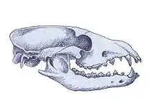 Cynarctus is an extinct genus of the Borophaginae subfamily of canids native to North America. The genus was first founded by W. D. Matthew in 1901, based from a pair of lower jaws, Cynarctus saxitilis, found in the Pawnee Creek Beds of Colorado.[1] It lived during the Middle to Late Miocene 16.0—10.3 mya, existing for approximately 5.7 million years.[2] Fossils have been uncovered in Colorado, California, Maryland, western Nebraska, and Texas. It was likely an omnivore, and lacked the bone-cracking adaptations found in some later borophagines.[3] Newer findings have proved the genus to be described as a large dog-like raccoon, a result from combining characteristics from Canidae with Procyonidae.[4]