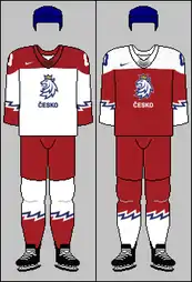 The Czech Republic men's national ice hockey team is the national ice hockey team of the Czech Republic. Since 2021, the team has been officially known in English as Czechia.[2] It is one of the most successful national ice hockey teams in the world and a member of the so-called "Big Six", the unofficial group of the six strongest men's ice hockey nations, along with Canada, Finland, Russia, Sweden and the United States.[3][4] It is governed by the Czech Ice Hockey Association. The Czech Republic has 85,000 male players officially enrolled in organized hockey (0.8% of its population).[5]