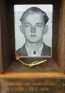 ![]() Czesław Kukuczka, at the Window of Remembrance, Berlin Wall Memorial | |