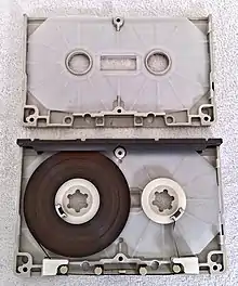 DC-International is a tape cassette format developed by Grundig[1] and marketed in 1965. DC is the abbreviation of "Double Cassette", as the cassette contained two reels; International was intended to indicate that, from the beginning, several companies around the world supported the format with suitable tape cassette tape recorders, recorded music cassettes and blank cassettes. Since DC-International did not compete effectively against the similar Compact Cassette, it was discontinued in 1967.[2][3]