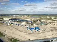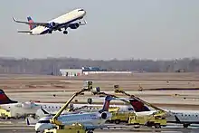 The airport is a major hub for Delta Air Lines and is also a base for Spirit Airlines.[4][5] Detroit serves as Delta's main gateway to Asia for the Eastern United States. The airport has service to 30 international destinations and service to 39 states across the United States. Operated by the Wayne County Airport Authority, the airport has six runways, two terminals, and 129 in-service gates.[6] Detroit Metropolitan Airport has maintenance facilities capable of servicing and repairing aircraft as large as the Boeing 747-400.[7]