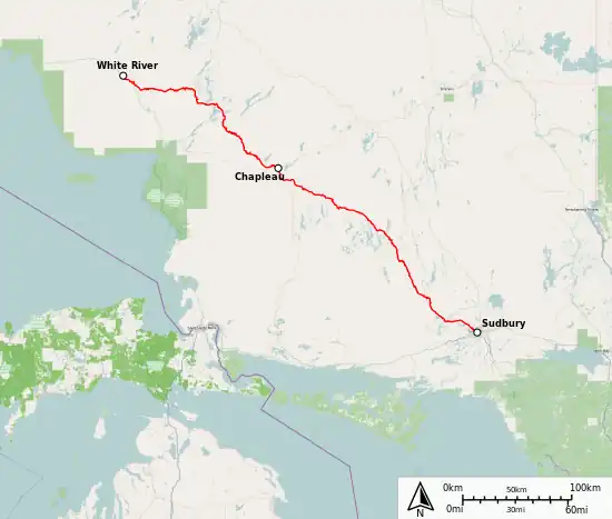 Termini | Sudbury White River | ||||||||||||||||||||||||||||||||||||||||||||||||||||||||||||||||||||||||||||||||||||||||||||||||||||||||||||||||||||||||||||||||||||||||||||||||||||||||||||||||||||||||||||||||||||||||||||||||||||||||||||||||||||||||||||||||||||||||||||||||||||||||||||||||||||||||||||||||||||||||||||||||||||||||||||||||||||||||||||||||||||||||||||||||||||||||