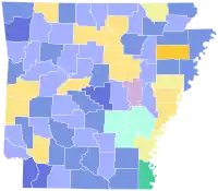![]() ![]() Boozman: 40–50% 50–60% 60–70% 70–80% 80–90% James: 50–60% | |||||||||||||||||