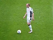 On 25 June 2012, Murphy signed for Championship club Blackburn Rovers on a two-year contract.[43] He said that he moved to Blackburn to play regularly and that it was the right time to leave Fulham.[44] He scored his first goal for Blackburn in a 2–2 draw with Huddersfield Town on 6 November 2012.[45] In March 2013, Murphy was succeeded as Blackburn captain by Scott Dann.[46] On 1 July, Murphy had his contract terminated by mutual consent despite being willing to stay at the club for another season.[47][48] While at the club, Murphy was praised by manager Gary Bowyer for his assistance during Bowyer's management career at Blackburn.[49]