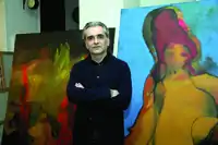 ![]() David Alexidze in front of his paintings at the Tbilisi State Academy of Arts, 2016 | |