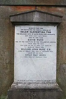 He was married to Helen Clementina Tod (d.1849) and together they had William John Mure (1845-1924). They lived at 8 Albyn Place on the Moray Estate near Charlotte Square.[4]