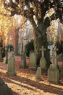 - The Cemetery contains the war graves of 39 Commonwealth service personnel, 29 from World War I and 10 from World War II, registered and maintained by the Commonwealth War Graves Commission.[1] The oldest soldier buried is Major-General Sir John Munro Sym KCB (1839–1919) aged 80 (this is a normal grave not a CWGC grave).[8] Most of the war graves lie in the independently accessed 20th century section to the north of the main cemetery.